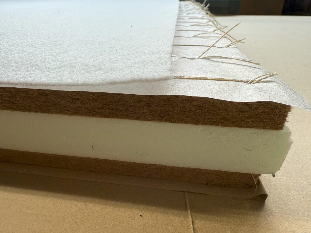 手床とは、畳の土台(畳床)を、稲わらを使い熟練の職人が手作業で何層にも重ねて縫い上げて作られた伝統的な畳床のことです。