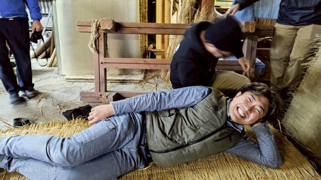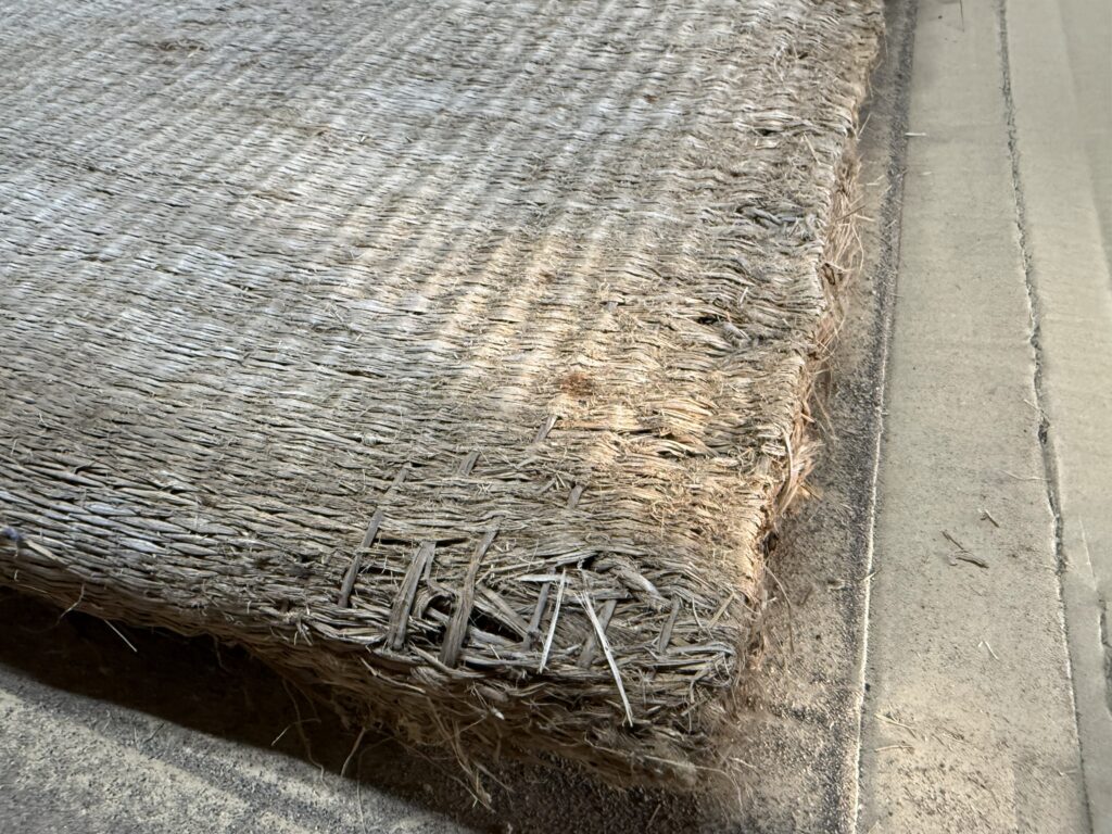 また、今回の研修の話に戻りますが、始めに見させていただいた畳床は『おしまくり床』と呼ばれ、江戸時代のものだと教えていただきました。江戸のどの時期かにもよりますが、150年以上前のものではある為、長持ちすることがわかります。